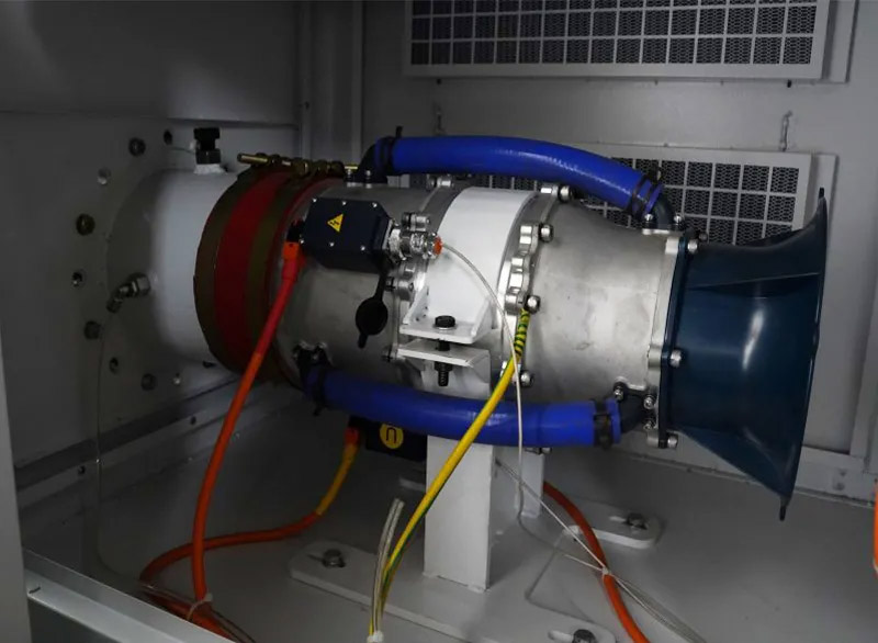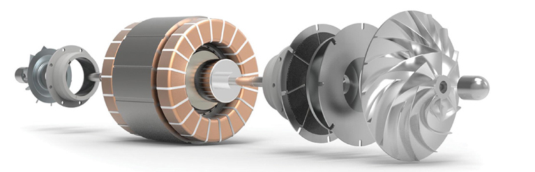 The impeller is directly connected coaxially with the motor, and the shaft is supported by radial and thrust air suspension bearings.
